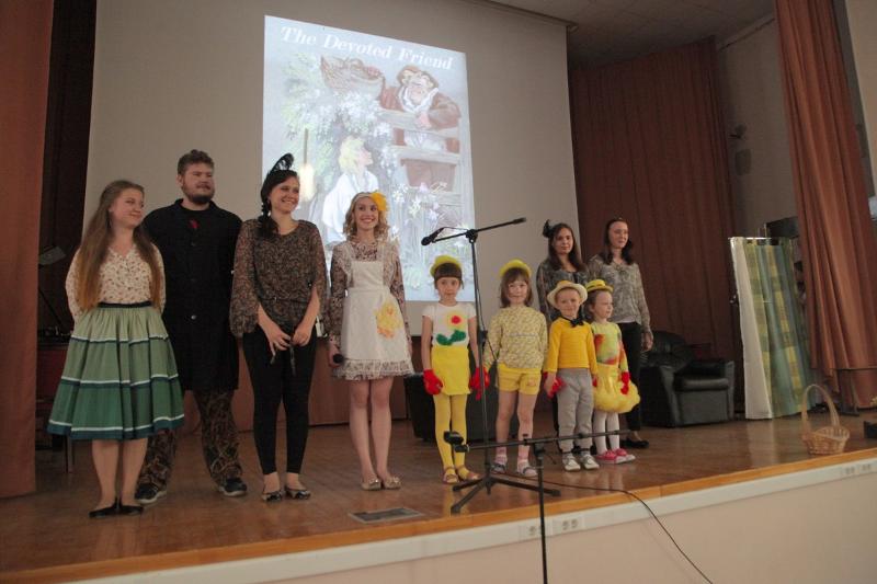Весь спектакль шел по-английски, однако для удобства зрителей им были розданы программки с кратким изложением произведений на русском языке. Настоящим украшением спектакля стали его самые юные участники: воспитанники детских садов Максим Махонин, Назар Кузьмин, Володя Кургалин, Маша Ильичева, Аня Богомолова и Лиза Грекова, а также учащиеся младших классов Варя Краснобаева, Женя Виноградова и Саша Бузин, которые вышли на одну сцену с актерами театральной студии уже во второй раз.