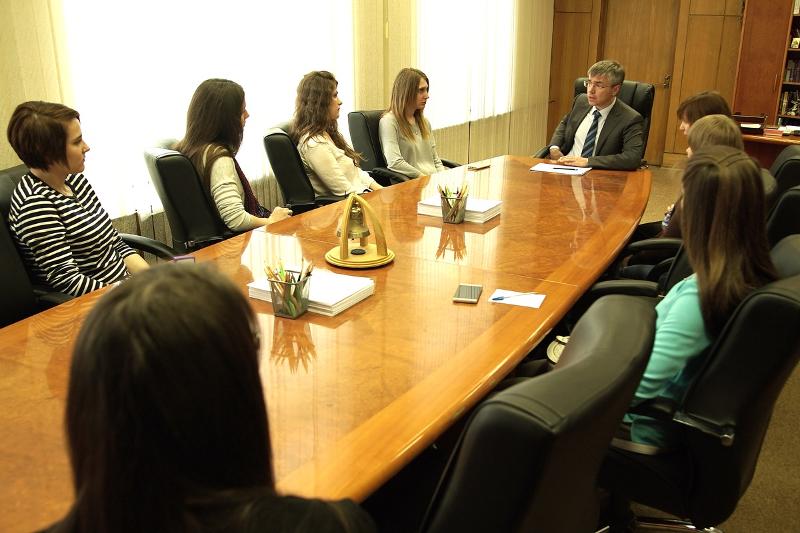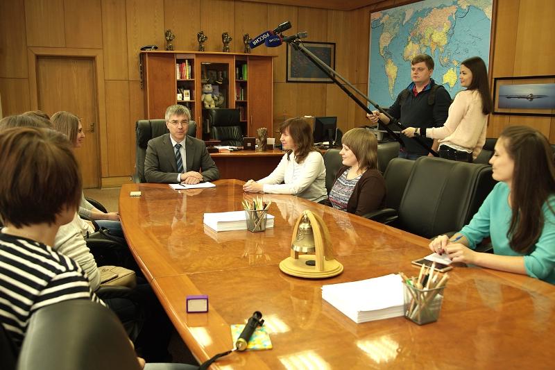 Экскурсия по редакции канала «Россия 1» началась с беседы с Евгением Васильевичем, в ходе которой он рассказал о своем профессиональном пути, рабочем графике, планах на будущее, о возможностях стажировки в московской редакции ВГТРК, а также дал будущим журналистам несколько ценных советов.
