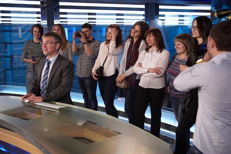 После беседы студенты осмотрели святая святых телеканала – newsroom, эфирную и монтажные студии телеканала «Россия 1», где в это время шел прямой эфир одного из выпусков телепередачи «Вести». Будущие специалисты медиа-отрасли узнали, что ВГТРК это: