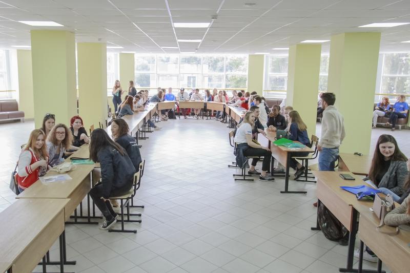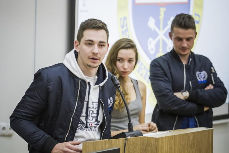 Чтобы поприветствовать делегацию из 24 французских студентов, в новом корпусе экономического факультета ВГУ собрались проректор по воспитательной и социальной работе Олег Гришаев, проректор по экономике и международному сотрудничеству Олег Беленов, декан экономического факультета Павел Канапухин, представители факультетов романо-германской филологии, международных отношений, экономического факультета.