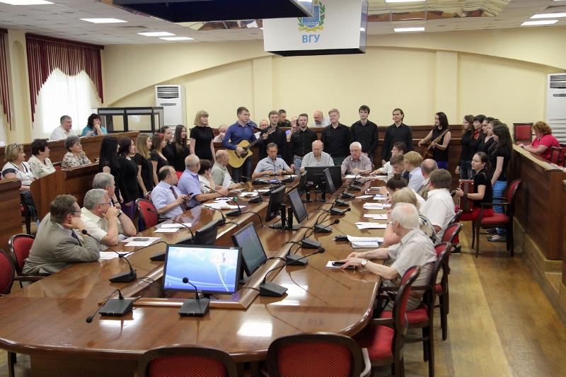 В завершение заседания вокальная группа Общеуниверситетского хора ВГУ выступила с творческим поздравлением родному вузу с окончанием учебного года.
