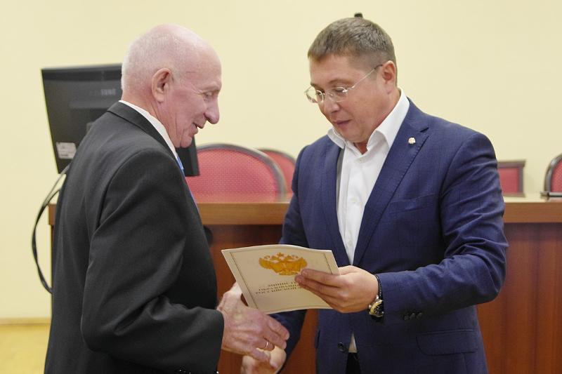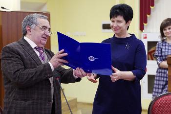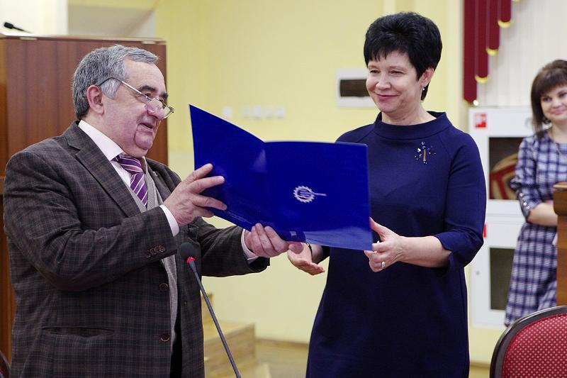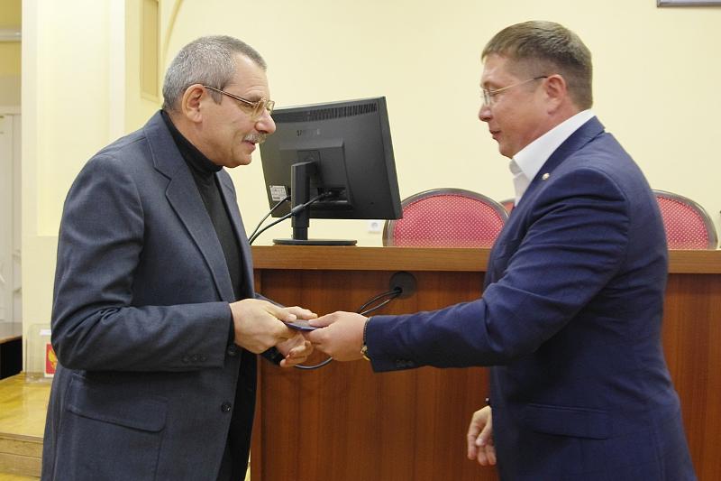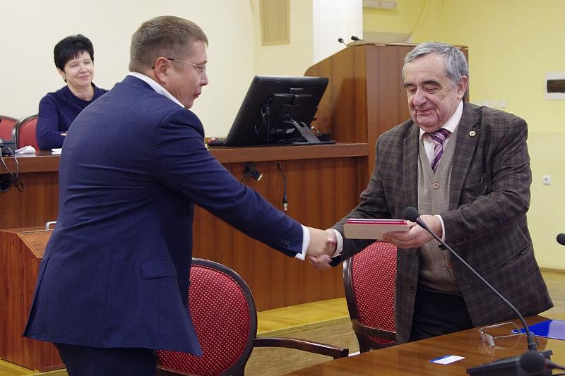 Начало заседания также было ознаменовано вручением сотрудникам вуза почетных званий, грамот и нагрудных знаков: профессору медико-биологического факультета Виктору Голубу, профессору филологического факультета Тамаре Никоновой, директору заповедника «Галичья гора» Николаю Скользневу, профессору медико-биологического факультета Анатолию Беляеву, директору ИМО ВГУ Владимиру Родионову, профессору медико-биологического факультета Хачику Джувеликяну, руководителю Фотографического центра ВГУ Владимиру Голубу, профессору медико-биологического факультета Дмитрию Щеглову, Татьяне Богомоловой и Нине Левиной. Продолжением церемонии стало вручение руководителем концерна «Созвездие» Василием Борисовым почетных наград от имени Союза Машиностроителей России топ-менеджерам вуза: ректору Дмитрию Ендовицкому была вручена медаль «За доблестный труд», почетные грамоты «За добросовестный труд, высокий профессионализм и большой вклад в развитие промышленного комплекса в Воронежской области» – первому проректору-проректору по учебной работе ВГУ Елене Чупандиной и проректору по инновационной деятельности и коммерциализации технологий Татьяне Давыденко.