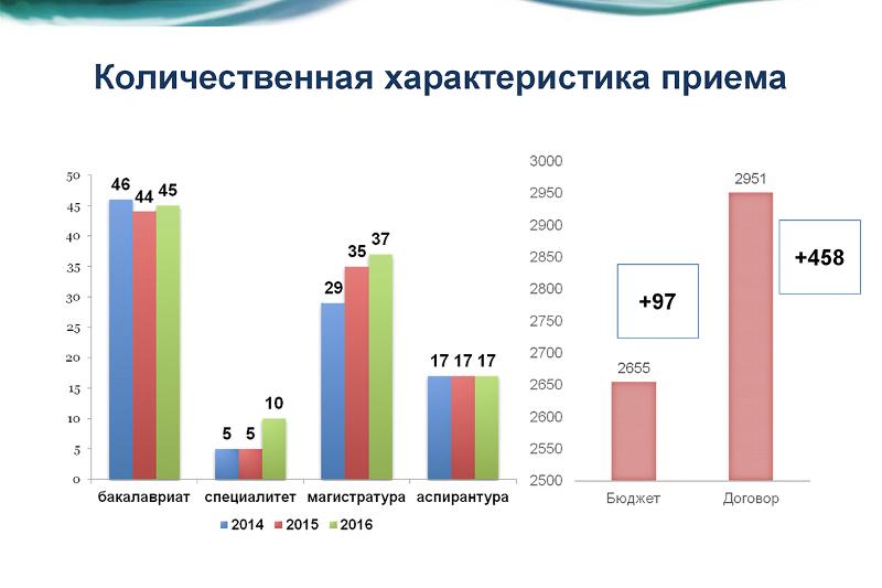 После этого члены Ученого совета приступили к рассмотрению повестки дня. Елена Чупандина представила Отчет о результатах образовательной деятельности университета в 2015–2016 учебном году и об итогах приемной кампании 2016 года. Она отметила, что в отчетном учебном году значительно вырос процент доходов от образовательной деятельности в общем бюджете вуза. Университет реализует большое количество уникальных направлений (30 – в бакалавриате, 27 – в магистратуре) и 5 специальностей, причем регулярно открываются новые программы. Елена Евгеньевна отметила, что выпуск этого составил 3969 человек по программам бакалавриата, специалитета и магистратуры и 112 по программам СПО. Проректор подчеркнула, что приемную кампанию этого года можно назвать особенно успешной, так как вуз выполнил показатели КЦП и значительно перевыполнил показатели прошлых лет.