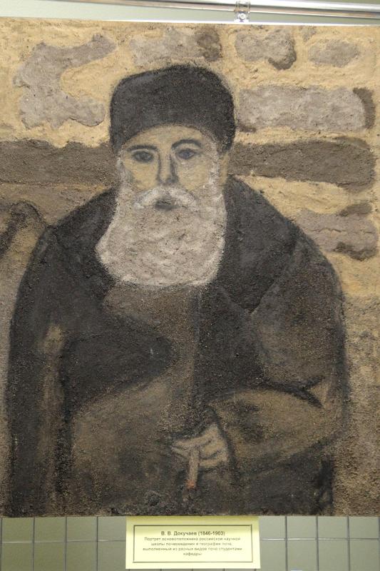 20 октября в холле второго этажа Главного учебного корпуса Воронежского государственного университета открылась выставка «80 лет кафедры почвоведения в столетней истории ВГУ». На ней представлены фотографии, документы, труды сотрудников кафедры – монографии, научно-популярная и учебно-методическая литература, – а также уникальный экспонат – портрет основоположника российского почвоведения В.В. Докучаева, выполненный из почв разной цветовой окраски студентами-почвоведами, образец воронежского чернозема.