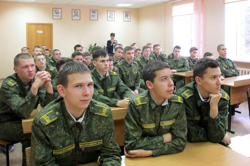 В Воронежской кадетской школе им. А.В. Суворова учатся юноши с 8 по 11 класс. В настоящее время кадетов 196, и они выбрали путь служения Отечеству с детства. Поэтому наибольший интерес учащиеся проявили к поступлению в Учебный военный центр при ВГУ. Владимир Гусев рассказал ребятам о специальностях УВЦ, условиях поступления, об экзамене по физической подготовке. Алла Мартынова провела презентацию медико-биологического факультета, предоставила информацию о новых медицинских специальностях, перспективах трудоустройства.