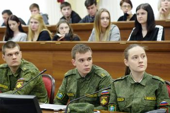 На встрече с известным журналистом собрались студенты факультета журналистики и филологического, особую группу составляли обучающиеся по специальности «Военная журналистика», что приятно удивило гостя вуза. Он рассказал, что после окончания школы поступил во Львовское высшее военно-политическое училище – единственное учебное заведение на территории СССР, где готовили военных журналистов, однако позже перевелся в МГУ. Между аудиторией и спикером завязался активный диалог.