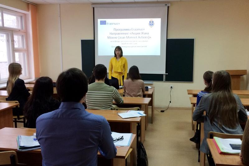 В сентябре 2016 года на факультете международных отношений и факультете философии и психологии Воронежского государственного университета началась реализация образовательного модуля «Миграция в Европейском союзе: проблемы и перспективы» в рамках программы Erasmus+ по направлению Жан Монне (Jean Monnet Actions) под руководством доцентов факультета международных отношений Натальи Журбиной и факультета философии и психологии Елены Якушкиной. После подписания грантового соглашения на факультетах прошли презентации учебного модуля, в ходе которых были обозначены цели и задачи проекта, этапы его реализации, а также мероприятия, запланированные на 2017 год.