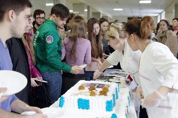 Цветы возложены… Сотрудники и студенты возвращаются в Главный учебный корпус, где их ждет небольшой праздник.