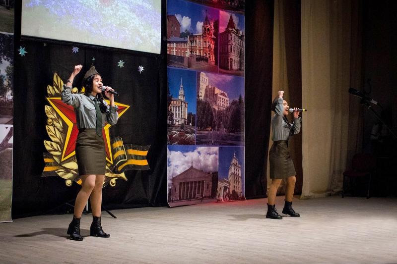 На фестивале выступили иностранные студенты Воронежского государственного университета – студентка филологического факультета Ниамби Нцегани Дивин Флорсиль из Конго с песней «Катюша», студентка факультета географии, геоэкологии и туризма Буй Тхи Тху Чинг из Вьетнама с песней «Письмо с фронта», студентка юридического факультета Ракутумалала Аримануи Луизет Мангатина с Мадагаскара с песней «Огонёк», студентка факультета международных отношений Анджани Мария Тересия Путри и студентка довузовского этапа подготовки Гултом Соня Иохана из Индонезии с песней «Едут по Берлину казаки».