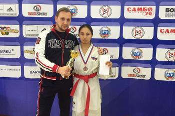 Бронзовым призером Кубка страны стала студентка юридического факультета Воронежского государственного университета Александра Лиджиева. Для Саши участие в соревнованиях стало дебютом уже во взрослой категории. Она уверенно обошла соперниц из Югры и Ростовской области, уступив весьма спорный балл спортсменке из Уфы, победительнице соревнований. В борьбе за «бронзу» воронежская каратистка методично расправилась с представительницей Московской области и подтвердила свою квалификацию.