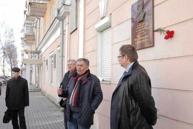 22 марта по адресу: ул. Театральная, д. 19 состоялось торжественное открытие мемориальной доски профессору Воронежского государственного университета Юрию Борисовичу. В «профессорском» доме на Театральной Юрий Борисович жил с 1957 года по 2007 год.