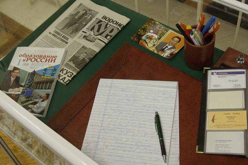27 марта в Музее истории ВГУ открылась выставка «Памяти ректора ВГУ, профессора Владимира Тихоновича Титова». На ней собрались родственники, коллеги и друзья ученого, его ученики. Они отмечали, что Владимир Тихонович был для всех примером ученого, организатора, самым настоящим «университетским» человеком.