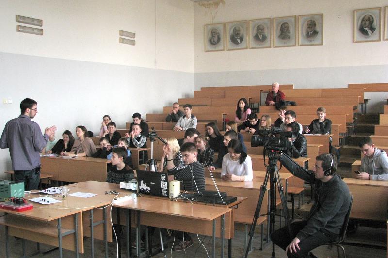 25 марта в стенах Главного корпуса Воронежского государственного университета вновь собрались слушатели проекта «Субботний университет». Ассистент кафедры радиофизики, кандидат физико-математических наук Владимир Проскуряков представил аудитории лекцию «Занимательные опыты по радиоэлектронике».
