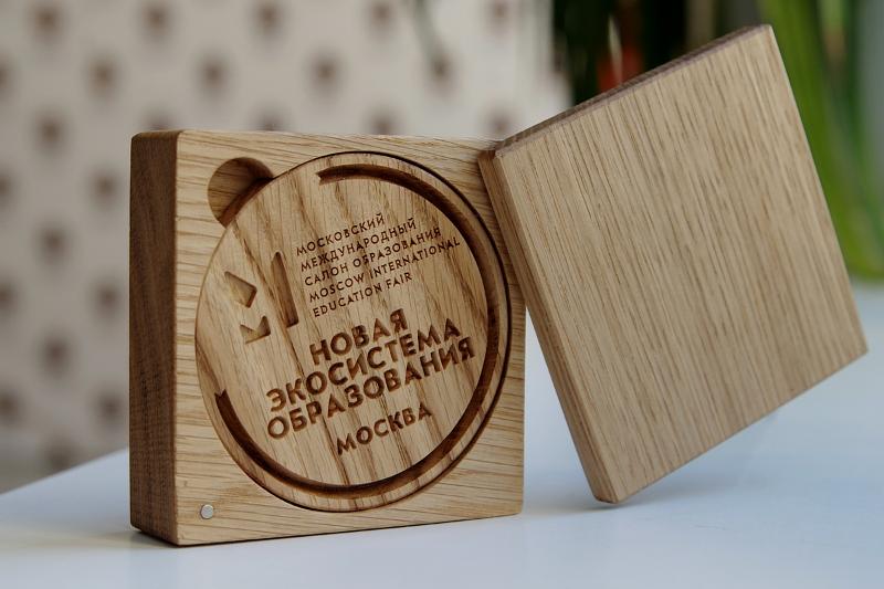Как и в прошлом году работа команды нашего вуза на Салоне получила высокую оценку и удостоилась медали «За вклад в развитие образования». В этот раз организаторы решили отказаться от традиционных металлических медалей и вручили лучшим стендам знаки отличия, изготовленные из кедра – натурального и экологичного материала. Дизайн оригинальных медалей был разработан при участии Заместителя министра образования и науки РФ Вениамина Каганова, который лично наградил представителей делегации ВГУ.