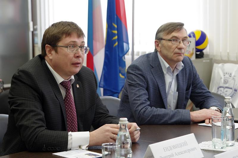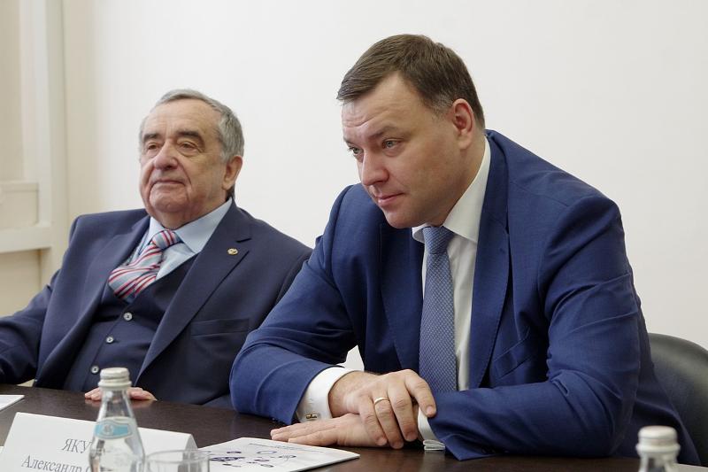 По завершении пленарного заседания состоялась встреча Дмитрия Ендовицкого и ведущего специалиста службы протокола Вячеслава Асеева с заместителем директора Федерального исследовательского центра «Информатика и управление» Российской академии наук, профессором Александром Зацаринным.