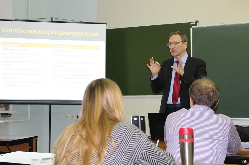 Преподаватель Вячеслав Авиутский в свою очередь прочитал лекции по дисциплине «Межкультурный менеджмент», в рамках которой слушатели программы расширили свои межкультурные компетенции в теоретическом и практическом аспекте, участвовали в анализе и решении конкретных профессиональных ситуаций. Французские коллеги отметили активную позицию слушателей, их умение анализировать западные принципы предпринимательства в плане их применения на своих предприятиях.