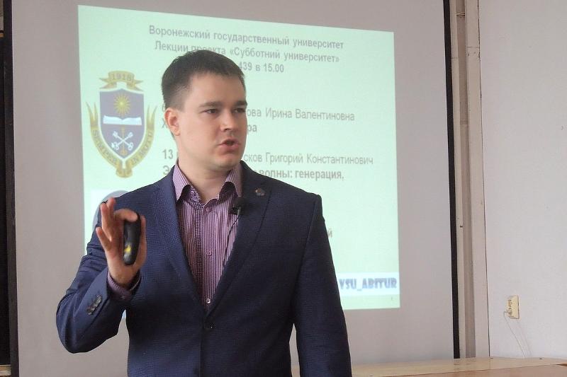 Следующая встреча участников проекта «Субботний университет» состоится 6 мая в 15:00 в ауд. 439 Главного корпуса ВГУ (Университетская площадь, 1). Доцент кафедры физической химии химического факультета Ирина Протасова выступит с лекцией о химии компьютера. 13 мая доцент кафедры электроники физического факультета Григорий Усков расскажет о генерации, излучении, приеме электромагнитных волн.