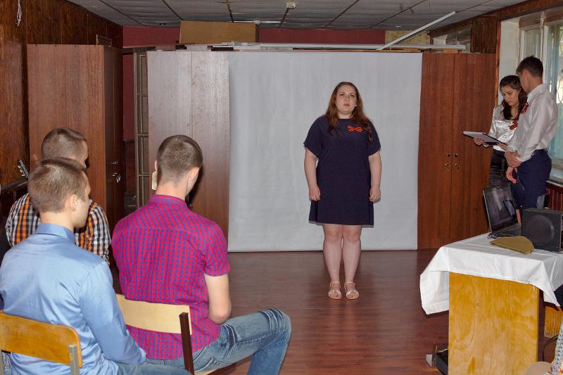 В преддверии празднования 72-годовщины Великой Победы 3 мая студенческий совет общежития № 4 Воронежского государственного университета организовал поэтическо-патриотический вечер. Ведущими мероприятия стали студентка третьего курса химического факультета Елена Севостьянова и студент первого курса математического факультета Николай Гринёв.