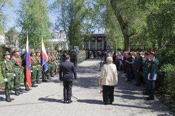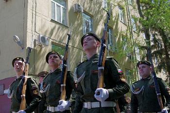 К памятнику сотрудникам и студентам, погибшим во время Великой Отечественной войны, вышел взвод почетного караула и знаменная группа курсантов Учебно-военного центра Воронежского госуниверситета. После чего, приветствуя собравшихся ветеранов, коллег и студентов, выступил ректор ВГУ Дмитрий Ендовицкий: