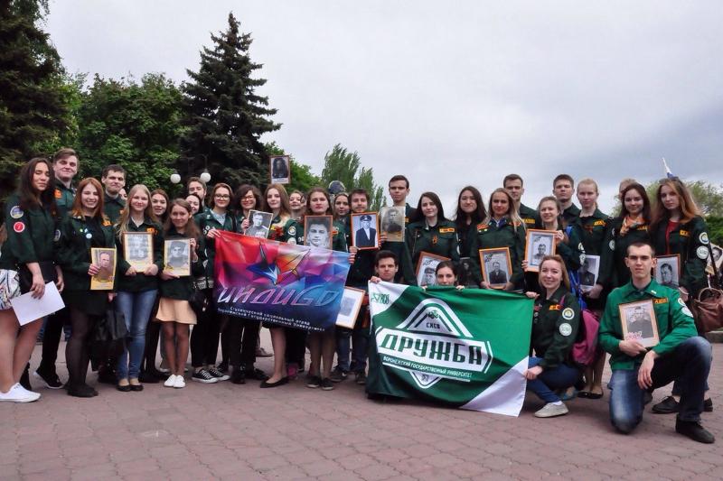Неизменным участником мемориальной акции является Воронежский государственный университет. Ежегодно студенты вуза становятся частью колонны «Бессмертного полка», выступают волонтерами шествия. В этом году участниками акции стали более 100 учащихся ВГУ. Фотографии своих родственников-фронтовиков также пронесли ректор Дмитрий Ендовицкий и проректор по воспитательной и социальной работе Олег Гришаев.