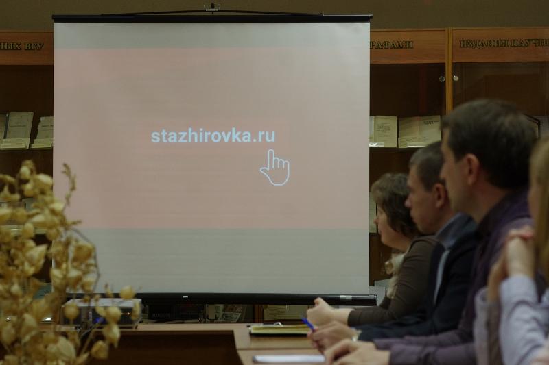 В Воронежском государственном университете прошла встреча руководителя проекта Стажировка.ру Алексея Филиппова с представителями факультетов. Алексей рассказал собравшимся о реализации нового проекта, участии в нем студентов.