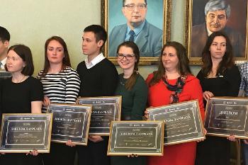 Дипломы лауреатам вручал вице-президент международного союза экономистов, президент Института мировой экономики и международных отношений имени Е.М. Примакова РАН, профессор Александр Дынкин.