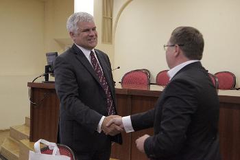 – За последние три года в нашем вузе побывали послы Евросоюза, нескольких европейских и азиатских стран, месяц назад на базе вуза прошла Европейская неделя. Университет находится в мощной динамике – в данный момент мы реализуем 21 международный проект Tempus и Erasmus+, подали еще 17 заявок, уже более десяти лет работаем с Оксфордским Российским фондом, – проинформировал глава вуза о международной активности.