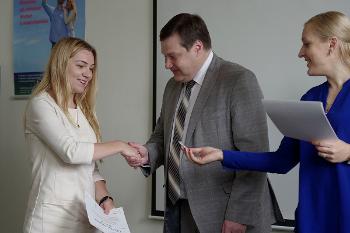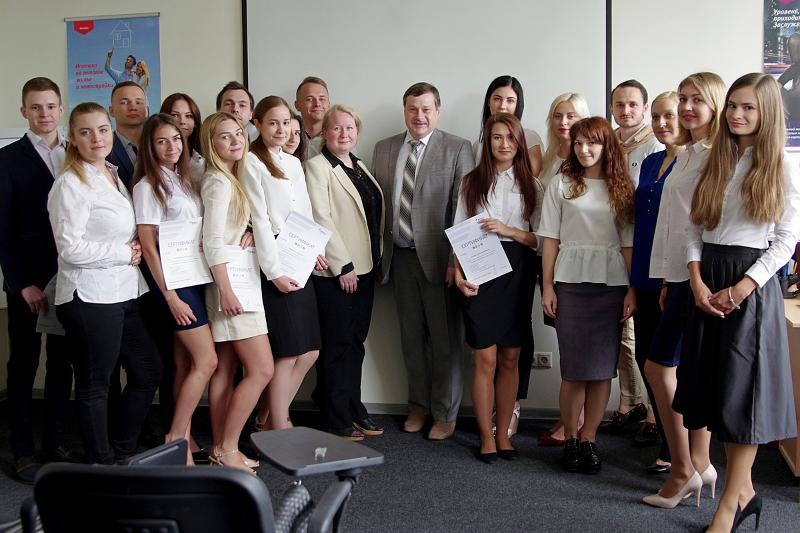 После приветственных слов исполняющая обязанности начальника отдела по работе с персоналом Анна Дорохина и заместитель управляющего филиалом ВТБ24 Алексей Кособуцкий вручили выпускникам «Банковской школы» сертификаты.