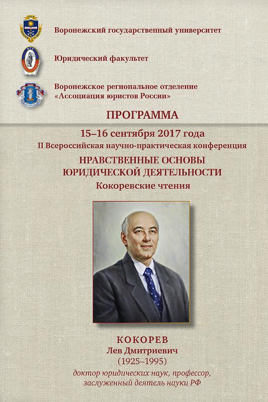 15–16 сентября на юридическом факультете Воронежского госуниверситета состоялась II Всероссийская научно-практическая конференция «Нравственные основы юридической деятельности – Кокоревские чтения».