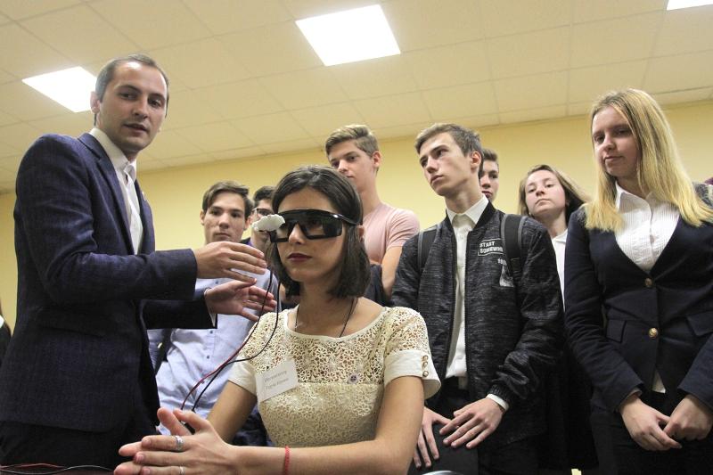 Организаторы также показали ребятам несколько проектов студентов Воронежского госуниверситета. Студенты второго курса факультета компьютерных наук ВГУ разработали приложение, которое совмещает в себе картинки из учебника анатомии и дополненную реальность, что делает процесс обучения более простым и увлекательным. Молодые ученые «CreativeScience» показали гостям шоу научных экспериментов, доказав, что наука может быть увлекательной. Участники проекта также смогли лично протестировать еще одно изобретение ВГУ – окулографический интерфейс, позволяющий управлять квадрокоптером при помощи глаз.