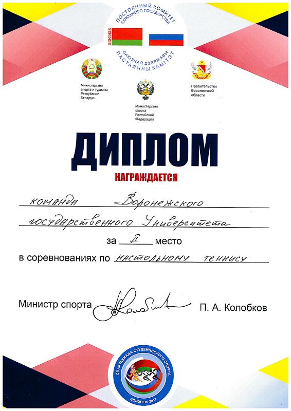 С 16 по 21 октября в Нововоронеже состоялась Спартакиада студенческого спорта. В рамках мероприятия прошли состязания по трем дисциплинам – настольный теннис, легкая атлетика и баскетбол. В соревнованиях по настольному теннису приняли участие восемь команд из вузов Беларуси и России. Сборную нашей страны представила команда Воронежского государственного университета, Воронежского государственного технического университета, Воронежского государственного института физической культуры.