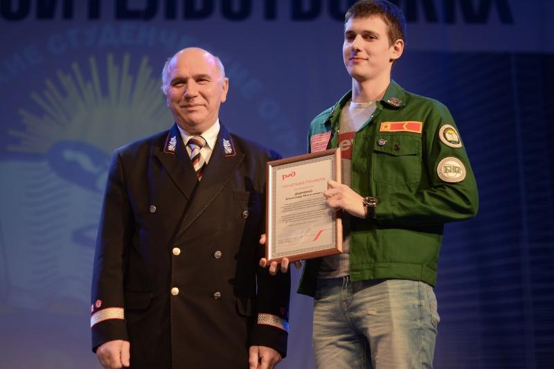 - За большой вклад в развитие студенческого движения и проявленную инициативу в работе по улучшению качества обслуживания пассажиров в качестве проводника почетную грамоту от начальника Юго-Восточной железной дороги Анатолия Володько получил Александр Дудченко.