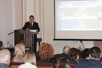 После приветственных слов собравшиеся перешли к обсуждению основной повестки дня. Первым с докладом «Университет как основа инновационной экосистемы устойчивого развития региона» выступил ректор ТГТУ Михаил Краснянский: