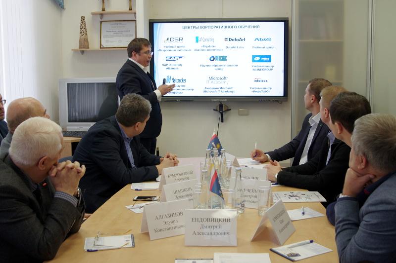 Дмитрий Ендовицкий проинформировал о плодотворном сотрудничестве вуза с бизнес-сообществом и, в частности, с ПАО Сбербанк. В качестве примеров взаимодействия были названы центры корпоративной подготовки, корпоративные магистратуры и базовые кафедры: