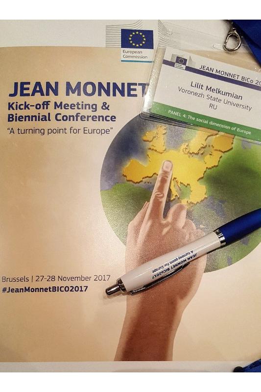 В конце ноября в Брюсселе состоялась международная конференция координаторов проектов в рамках программы Жана Монне Эразмус + «Что ждет Европу». Воронежский государственный университет на конференции представляла координатор международных студенческих программ факультета международных отношений Лилит Мелкумян. Она является сокоординатором программы Жана Монне модуля «Законодательство в отношении беженцев: европейский опыт и стандарты для России», поддержанного Европейской Комиссией в 2017 году.
