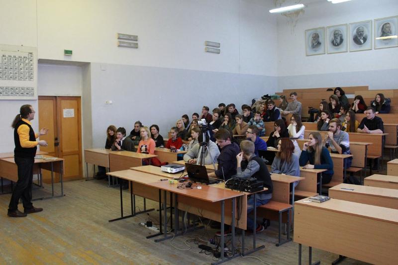 Юрий Ковыгин рассказал о способах передачи информации, а также об эволюции и развитии этого процесса во времени с точки зрения химических наук. Ученый поведал о роли химии в обмене информацией, о том, как эта наука со времен настенной живописи и до создания современных молекулярных переключателей неизменно сопровождает развитие форм и способов передачи информации между людьми. Кроме того, Юрий Ковыгин обратил внимание на то, какую роль играют некоторые химические соединения в формировании уникальных форм обмена информацией у насекомых и животных. Большое число интересных примеров, объяснение привычных фактов научными представлениями – все это, а также харизма ученого неизменно делают его лекции познавательными и интересными даже для тех, кто до сих пор оставался в стороне от химии.