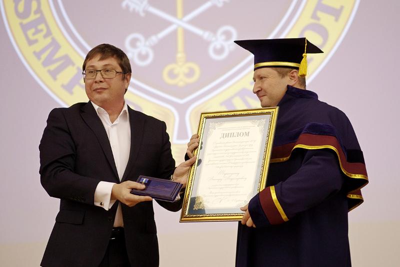 Виктор Таратухин поблагодарил университет за присвоение почетного звания и выступил с докладом «Создание инноваций в стремительно меняющемся мире. Будущее проектно-ориентированного подхода».