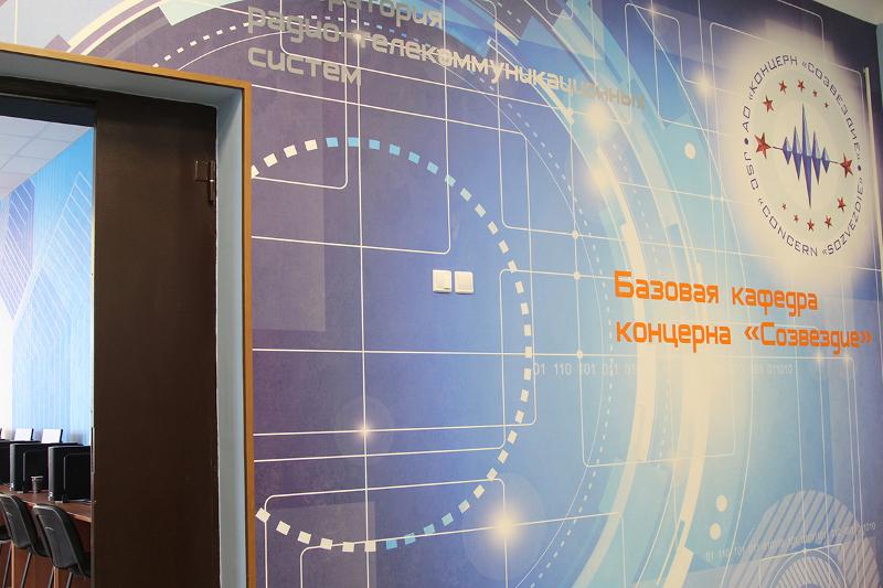 Лаборатория открыта при кафедре систем телекоммуникаций и радиоэлектронной борьбы Концерна. Помещение лаборатории разделено на несколько профильных зон – это лекционный и дисплейный класс. В лекционной зоне установлено оборудование для проведения занятий и презентаций. Зона дисплейного класса оборудована компьютерами. Дополнительно планируется установка радиоизмерительного оборудования. Также в лаборатории будет расположена коворкинг-зона.