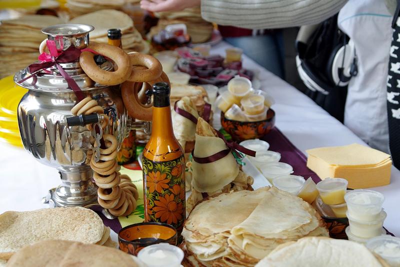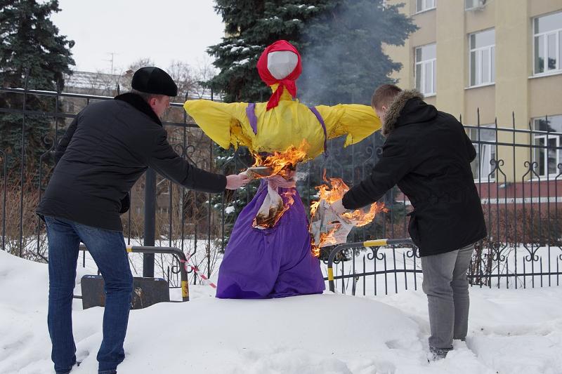Не забыли, конечно, и о сжигании чучела Масленицы и традиционном угощении – блинах со сметаной и мёдом.