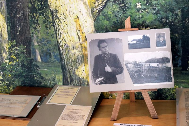 Также гости мероприятия смогли увидеть фотографию Пескова–первоклассника и фотографию его первой учительницы – Ефросиньи Митрофановны Печенкиной (в замужестве Бруданиной). Вероятно, что именно она научила юного Василия Пескова замечать красоту родной природы.