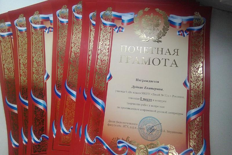 - первое место – Екатерина Дудник (Лицей №11, г. Россошь);