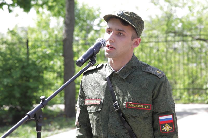 От лица сотрудников факультета военного образования ВГУ с наступающим праздником собравшихся поздравил старший преподаватель Борис Железняков и курсант Кирилл Пономарев.