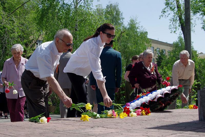 Участники митинга почтили память погибших в годы Великой Отечественной войны минутой молчания и возложили к памятнику цветы. Затем в ВГУ продолжилось чествование ветеранов. Поздравить их с главным праздником приехали активисты военно-патриотического клуба «Плацдарм 36».
