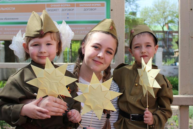 Мероприятие, посвящённое Дню Победы, продолжила акция «В защиту мира». На площадке у входа в филиал собрались студенты, преподаватели и гости филиала. К ним присоединились обучающиеся Борисоглебской школы № 5 и воспитанники детского сада № 7. Все вместе под песню «Солнечный круг» выпустили в небо сотню шаров с белыми голубями.
