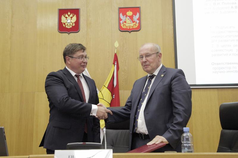 В завершение заседания ректор ВГУ Дмитрий Ендовицкий и ректор ВГМУ им. Н.Н. Бурденко Игорь Есауленко подписали договор о стратегическом партнерстве. Соглашение предусматривает развитие партнерства и долгосрочного эффективного и взаимовыгодного сотрудничества вузов, направленное на формирование научно-образовательных и культурно-просветительских связей, наращивание научного потенциала и обеспечение высокого качества профессиональной подготовки специалистов. Совместные усилия двух вузов будут направлены на развитие биомедицинских исследований и смежных областей знаний, на реализацию совместных образовательных программ, организацию стажировок, проведение совместных исследований, конференций, семинаров и других мероприятий всероссийского и международного уровня.