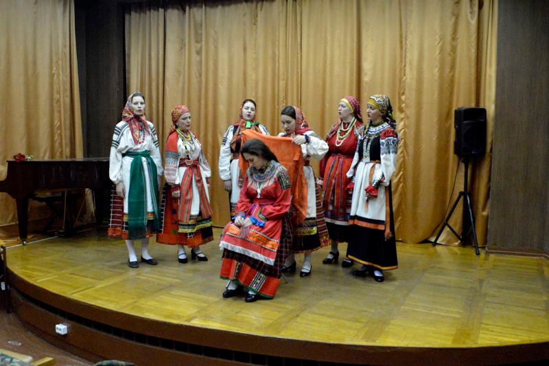 Исполнение песен сопровождалось подробными комментариями руководителя ансамбля Галины Христовой – этномузыколога, доцента кафедры этномузыкологии Воронежского института искусств. Слушатели узнали об истории и своеобразии народной культуры воронежского региона, фольклорных экспедициях и важности сохранения национальных культурных традиций.