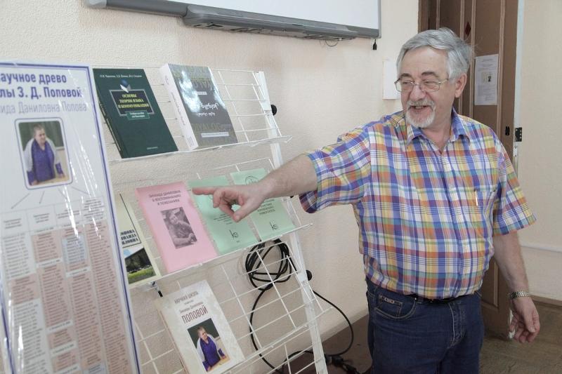 Зав. кафедрой английского языка естественно-научных факультетов Марина Стернина познакомила участников встречи с биобиблиографическим содержанием монографии. Она презентовала выверенный список опубликованных работ З.Д. Поповой и ее аспирантов. Всего у Зинаиды Даниловны 523 публикации, под ее руководством защищено 87 диссертаций, из них 76 кандидатских и 11 докторских.