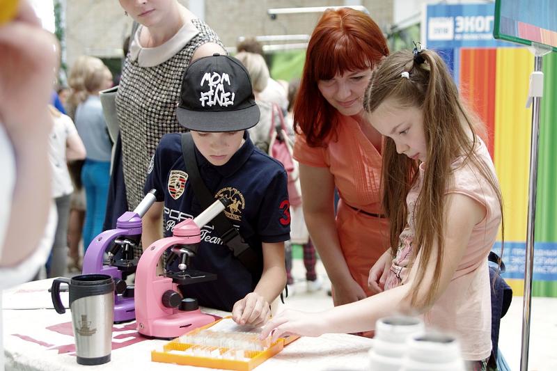 В зоне «Эксплотариум» представители Естественнонаучного детского университета рассказывали и показывали детям, как пользоваться настоящими микроскопами.