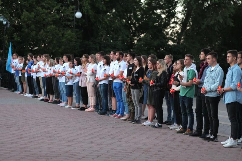 22 июня, в 4 часа утра, на площади Победы у мемориала защитникам Родины прошла Всероссийская акция «Свеча памяти». Ректор ВГУ Дмитрий Ендовицкий, проректор вуза по воспитательной и социальной работе Олег Гришаев, председатель профсоюзного комитета студентов Андрей Старцев и студенты-активисты университета стали ее участниками. Из более двух сотен зажженных свечей вместе с другими собравшимися они бережно выложили у мемориала надпись – «Помни 1941».
