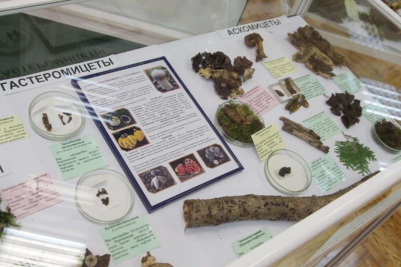 В фармацевтической и медицинской практике из представленных в витринах грибов могут найти применение трутовик лакированный, чага, трутовик настоящий, спорынья и энтомопаразитический (паразитирующий на насекомых) гриб из рода «Кордицепс» – кордицепс воинственный.